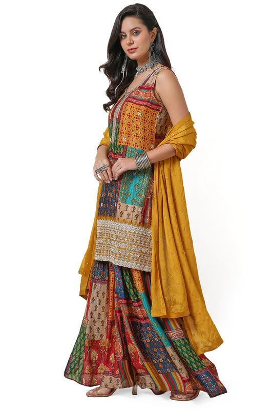 - Package Contains: 1 Kurta With Unstitched Sleeves, 1 Sharara, 1 Dupatta